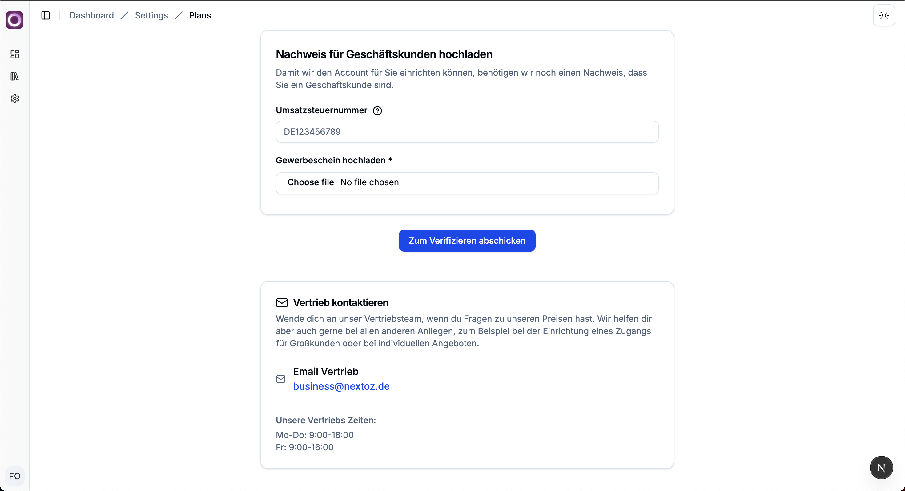 Im zweiten Schritt lädst du im Dashboard deine Gewerbebescheinigung hoch. Diese wird schnellstmöglich von einem unserer Kollegen überprüft, damit alle Daten korrekt hinterlegt sind. Dieses ist wichtig, damit Unterlagen und Dokumente korrekt zugestellt werden können.